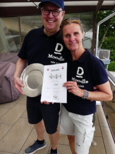 Die zweite Wettfahrt wird aufgrund der Wetterverschlechterung abgesagt. Somit werden Henrik Janzen mit seiner Frau Susanne als Vorschoterin Vereinsmeister 2025. Passend zur Siegerehrung gibt es noch einen kulinarischen Genuss in Form von selbstgemachten Burgern.